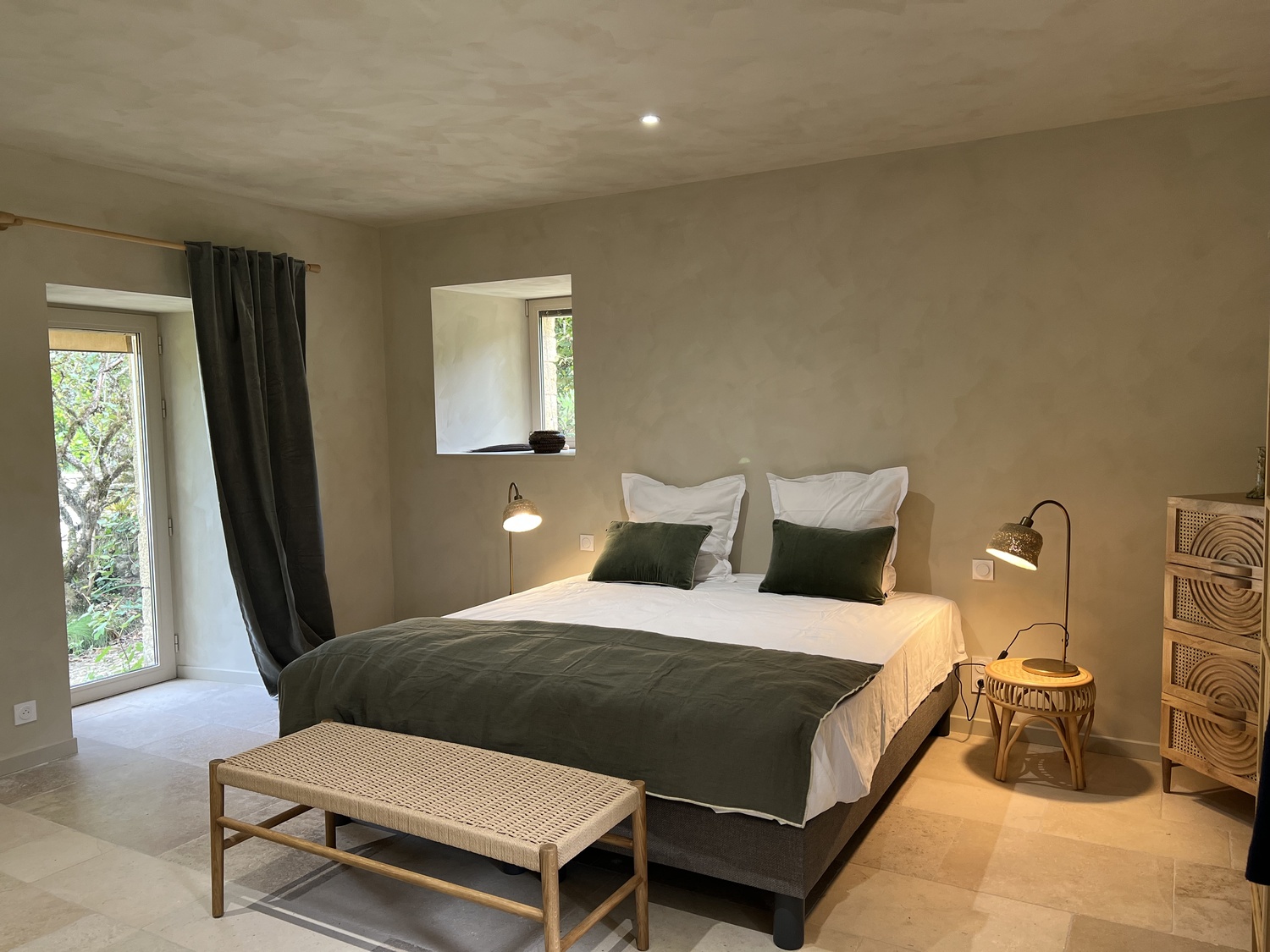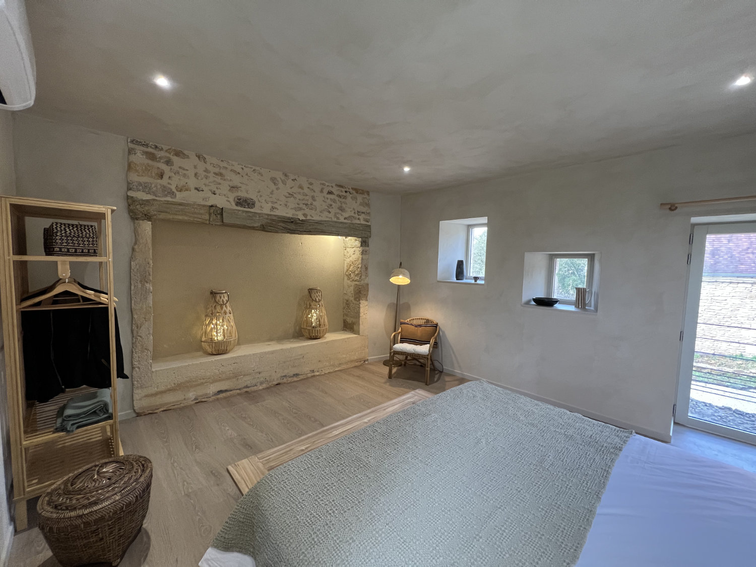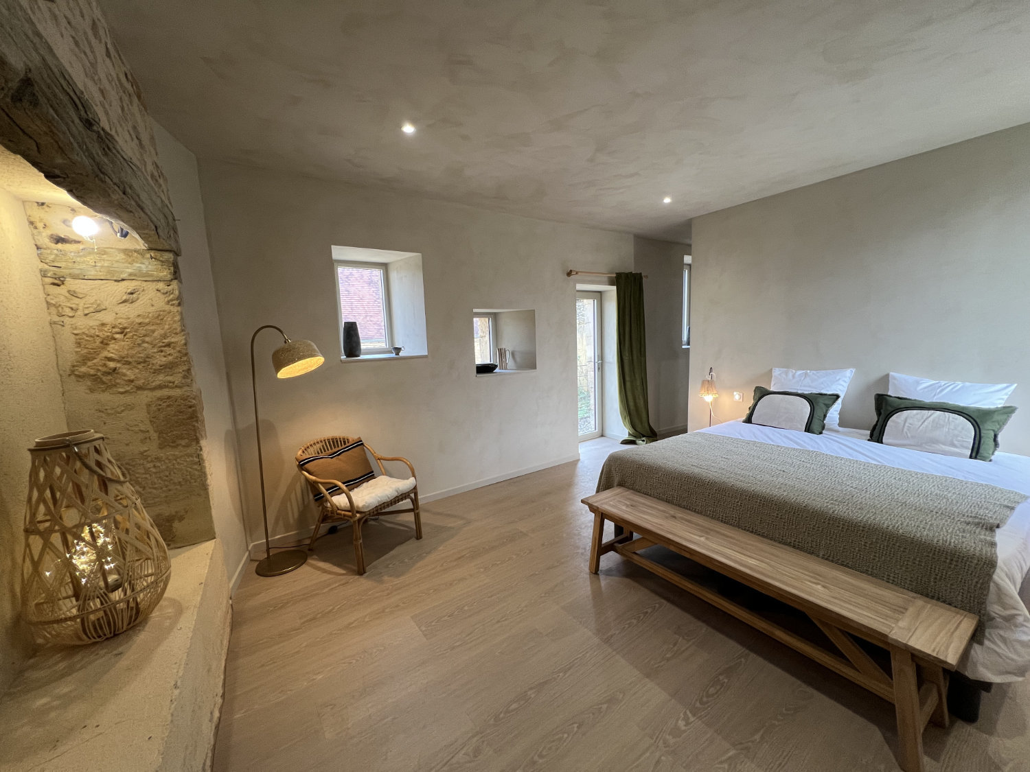 Blotti sur les hauteurs de Sarlat, à quelques minutes seulement du centre historique, La Maion de Sarlat invite à la quiétude et au ressourcement. Nichée au cœur du Périgord Noir, cette authentique longère périgourdine a été entièrement restaurée et transformée en maison de vacances haut de gamme par une décoratrice locale en 2025.  Les travaux, réalisés dans le respect des recommandations écologiques et environnementales, ont été confiés à des artisans d’art de la région, garants d’un savoir-faire traditionnel et raffiné.